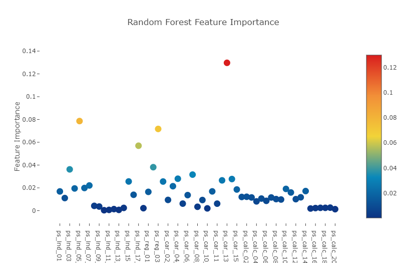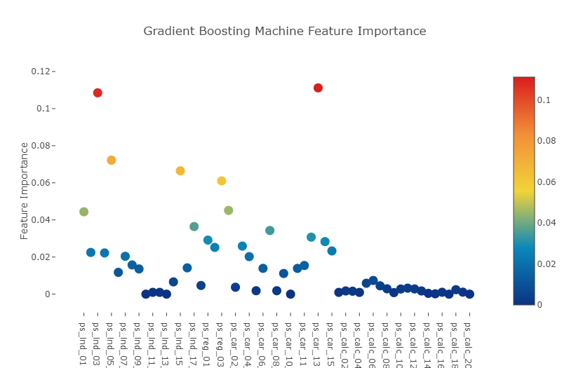 - Random forest와 Gradient Boost 모델에서 모두 ps_car_13 feature가 가장 중요한 것으로 나타남 >> 추가적으로 심층 조사를 진행할 필요가 있음
