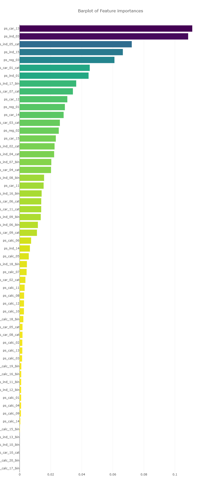 Interestingly we observe that in both Random forest and Gradient Boosted learning models, the most important feature that both models picked out was the column : ps_car_13.