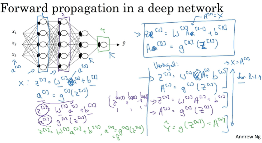 📌심층 신경망에서의 정방향 전파(C1W4L03)